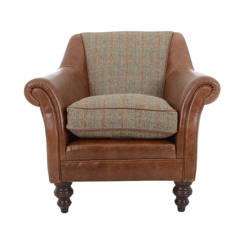 Made in the UK Hardwood frame Coil sprung seat Feather filled seat cushions Hide piping Polished hardwood feet Choice of 100% pure virgin wool Choice of natural leathersProduct Specification