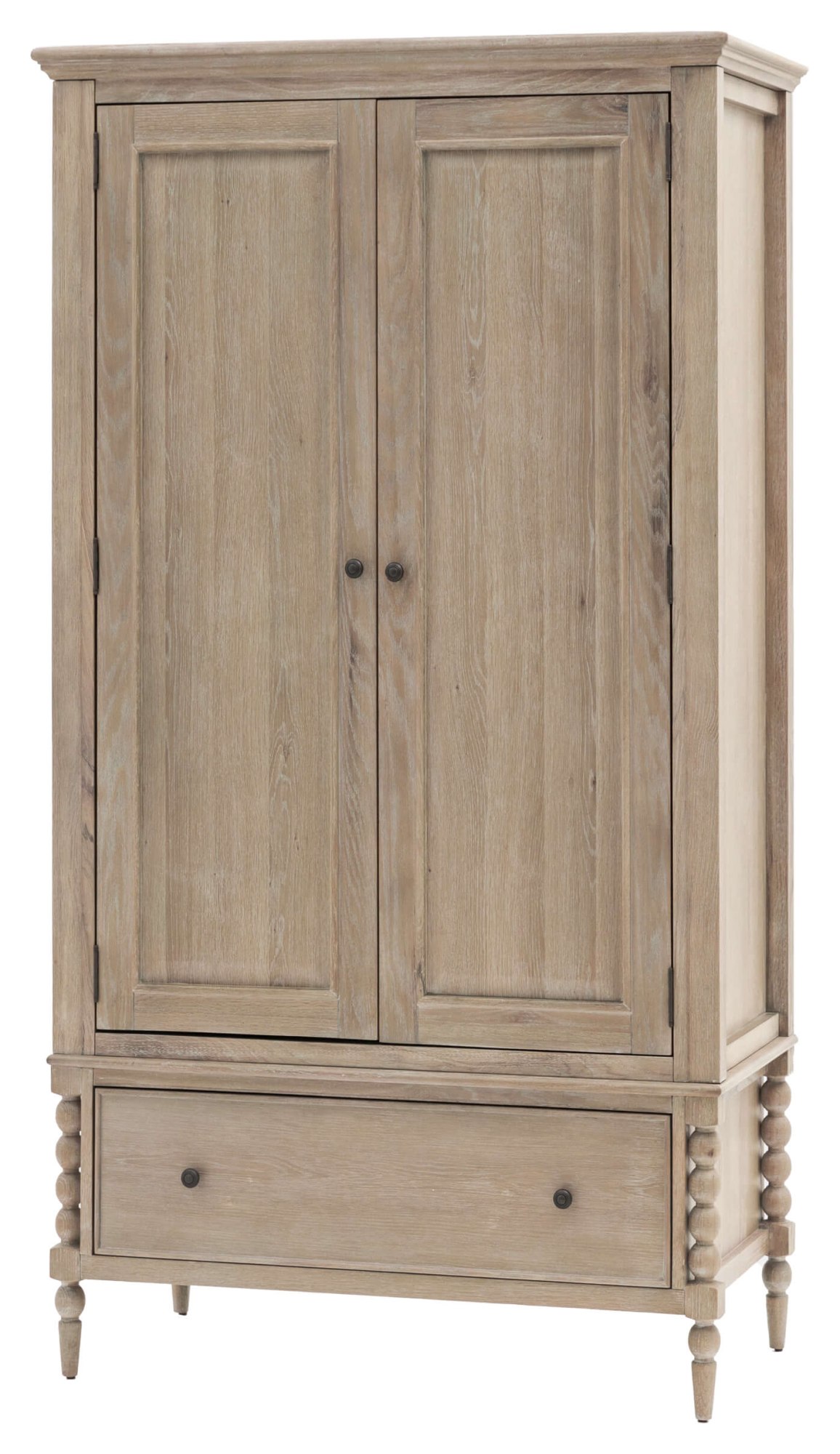 The Artisan 2 Door 1 Drawer Wardrobe is a beautifully crafted storage piece designed to bring warmth, character and everyday practicality to the bedroom. Made from solid oak and oak veneers, it features traditional detailing and a natural finish that highlights the richness of the wood grain. Behind the two doors, a spacious hanging area provides ample room for clothing, while the lower drawer offers convenient additional storage for folded items or accessories. Blending classic craftsmanship with modern functionality, this wardrobe works effortlessly in both traditional and contemporary interiors.