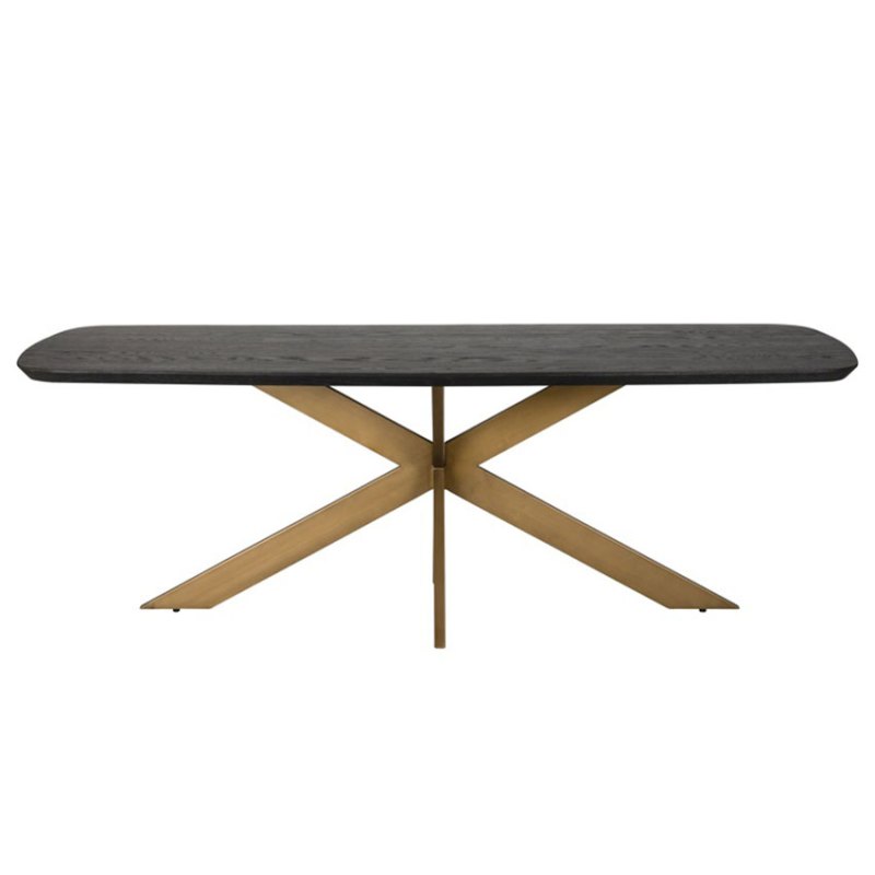 Material: Dark coffee wood and bronze metal Design: Danish oval design dining table for a touch of luxury Style: Captivating 1920s-inspired aesthetic Craftsmanship: Exquisite detailing for a refined finishProduct Specification
