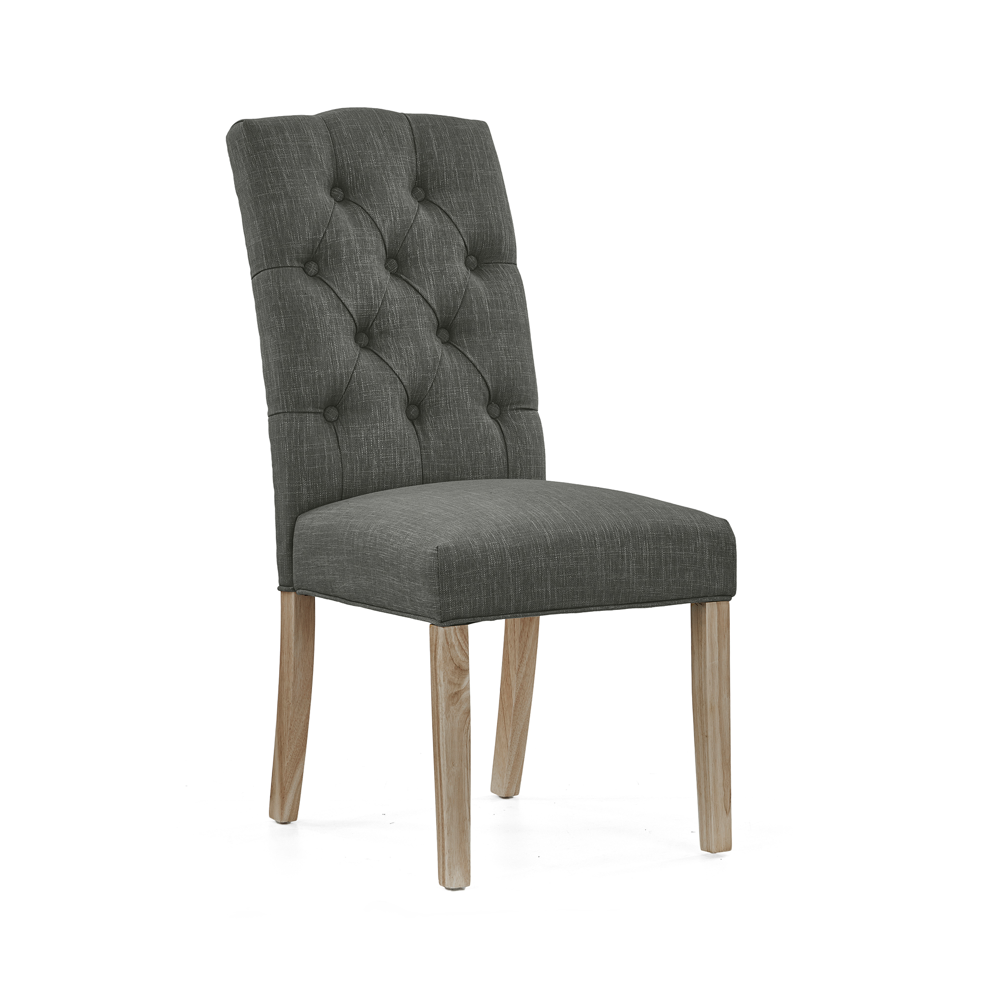 The Chelsea Charcoal Dining Chair White Wash Leg is a stylish and practical dining chair designed to bring comfort and character to the home. Upholstered in a smart charcoal fabric, it offers a versatile look that works beautifully with both classic and more contemporary dining spaces. The white wash wooden legs soften the overall design and add a relaxed, timeless feel, while the high back helps create a more supportive seat for everyday dining and longer meals. The chair has a traditional, elegant profile that makes it easy to pair with a wide range of dining tables, and its neutral finish gives it lasting appeal across different interior styles. Available product information also indicates that this is a knock-down design with a white wash leg finish.