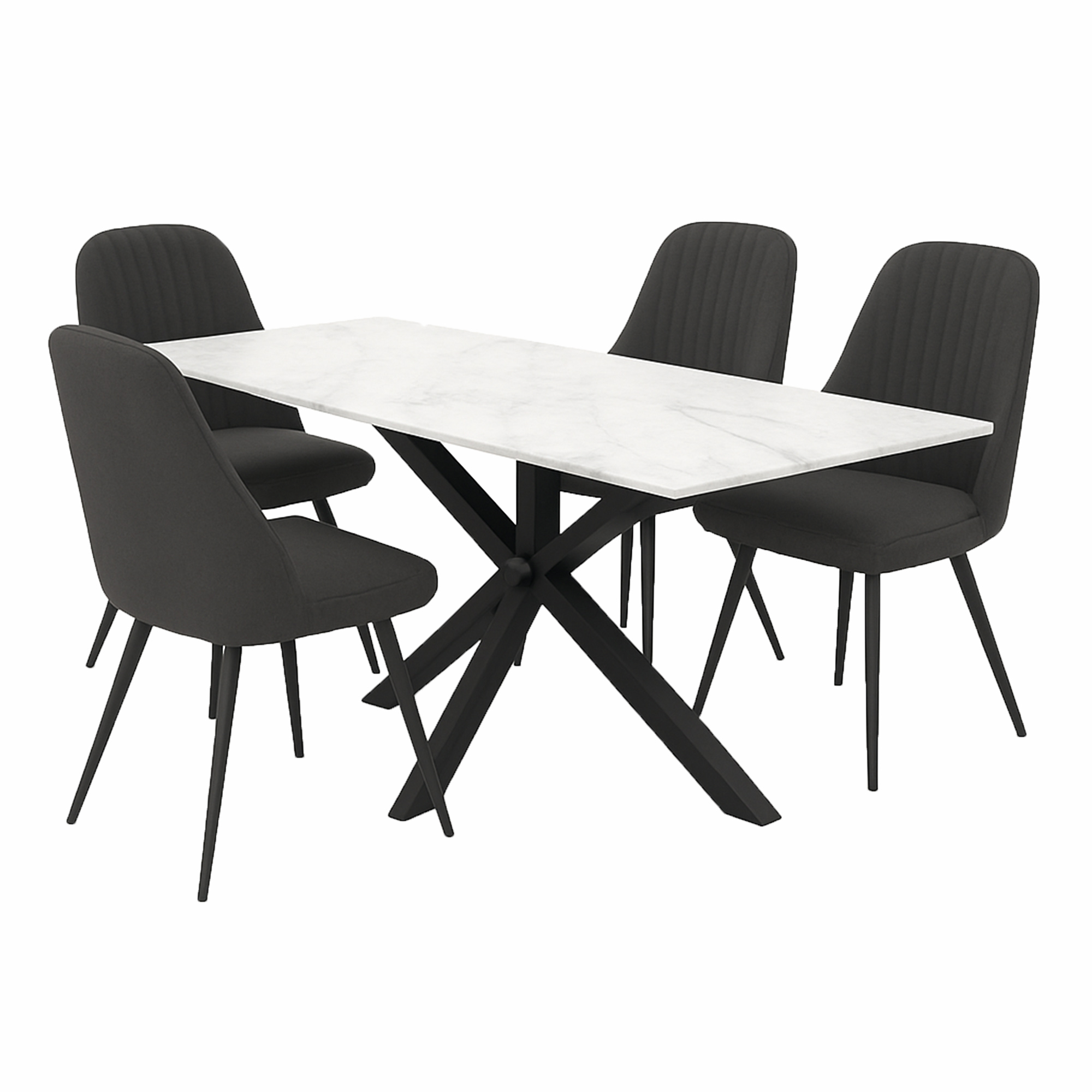 Francesco White Extending Dining Table & 4 Dark Grey Dallas Dining Chairs