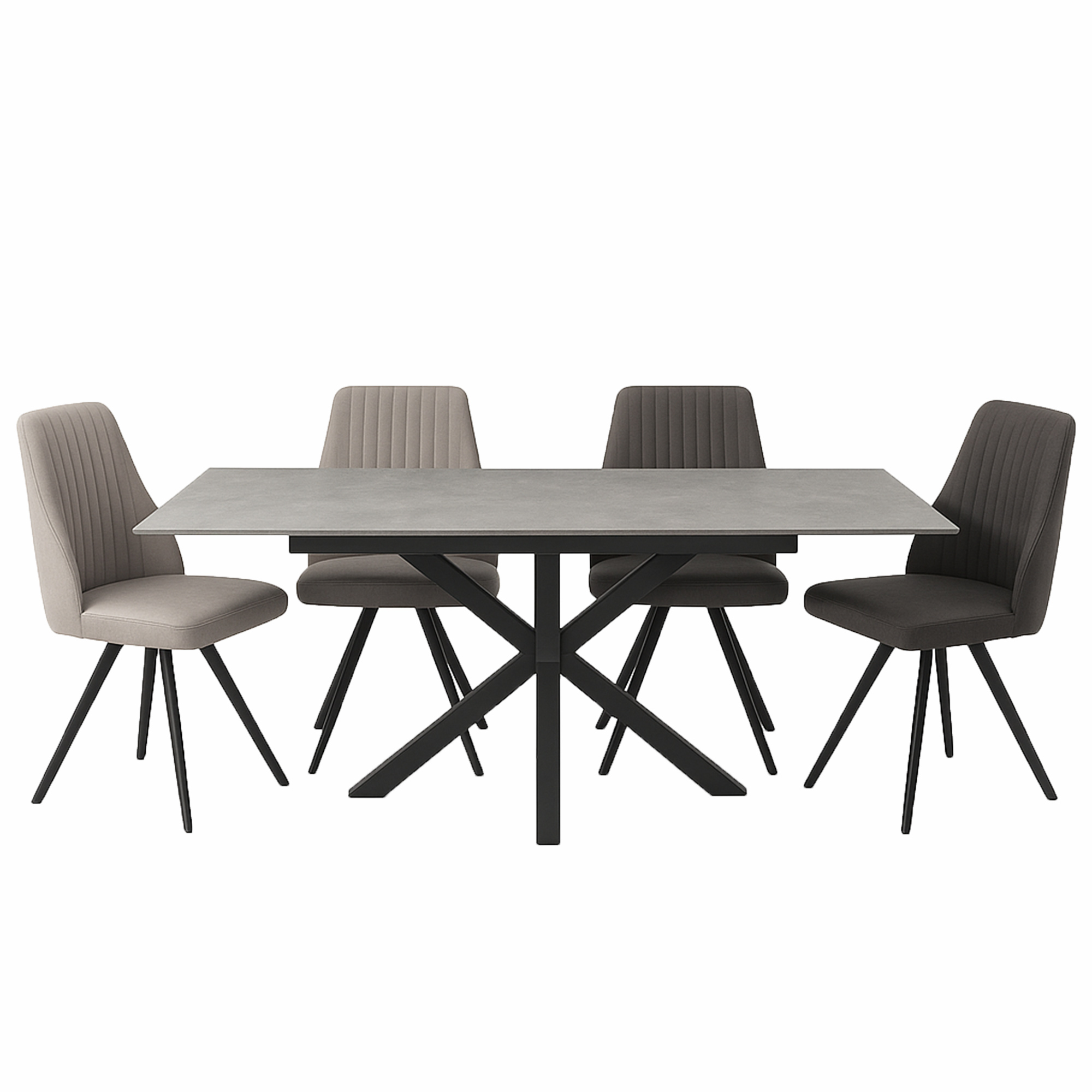 Francesco Extending Dining Table & 4 Dallas Swivel Chairs (Light & Dark Grey) | Lee Longlands