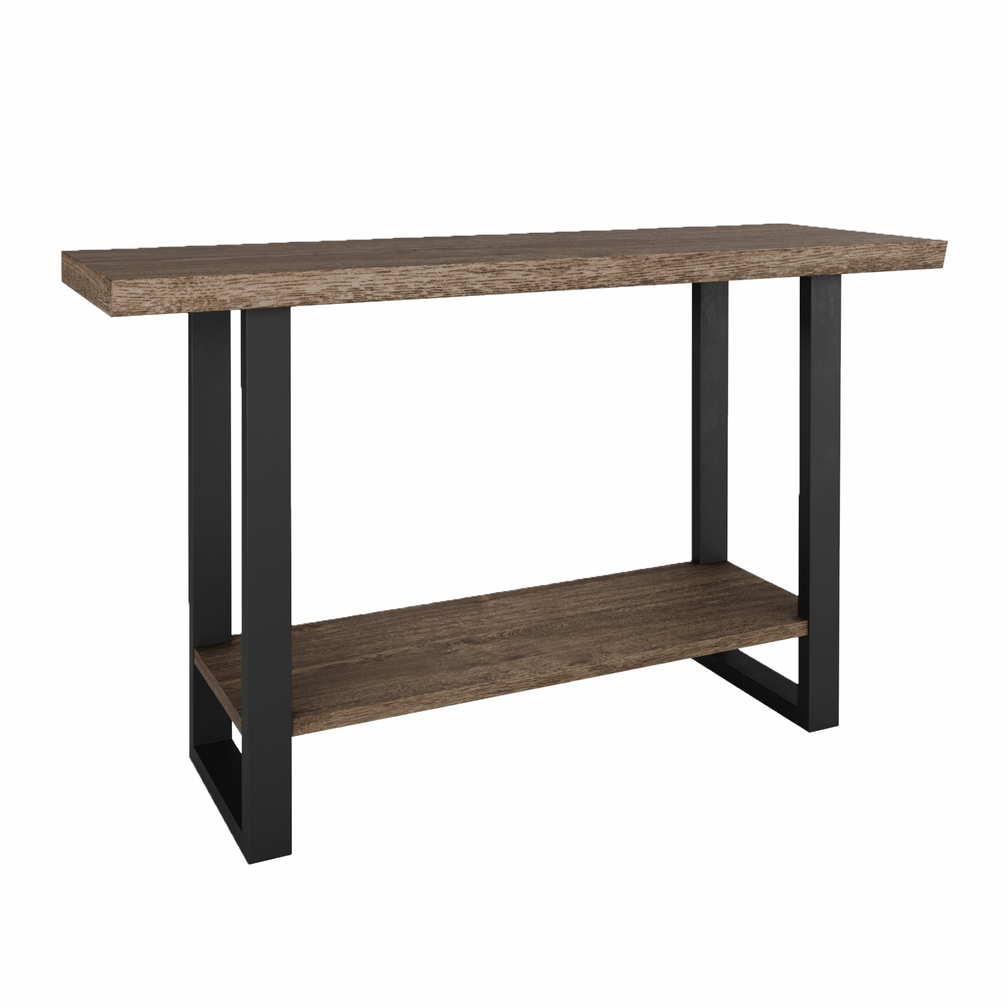The Fucino Console Table104cm blends a dark-stained oak-veneered top and body with a sleek black powder-coated metal U-leg base. It features two smooth-glide drawers above an open shelf—ideal for keys, mail, books, or decorative pieces. With its elegant yet understated proportions, clean lines and sturdy build, this console table enhances smaller spaces without overwhelming them. Minimal assembly is required—simply attach the base—and it arrives ready to transform hallways, living rooms, or behind sofas.