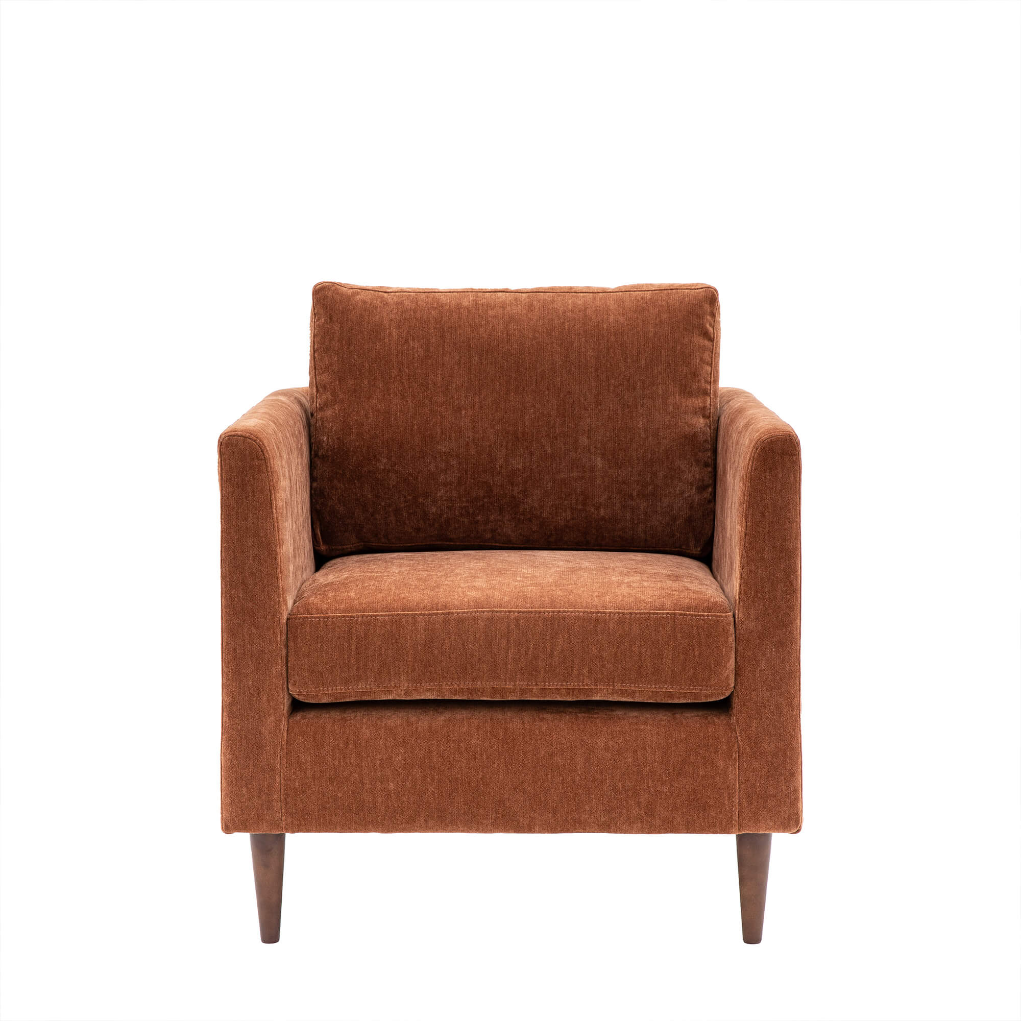 The Gateford Rust Armchair brings warmth and contemporary style to your living space. Upholstered in a rich rust-toned fabric, this armchair adds depth and character while maintaining a refined and modern aesthetic.