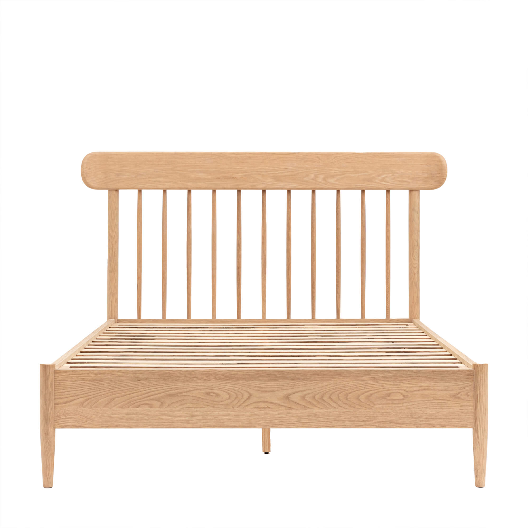 Finished in a warm natural wood tone, the design highlights the grain and texture, creating an inviting and versatile look that suits both modern and classic interiors. Built for durability and everyday comfort, the Hatfield Spindle Bed provides a sturdy and supportive base for a standard double mattress, making it a practical yet stylish choice.
