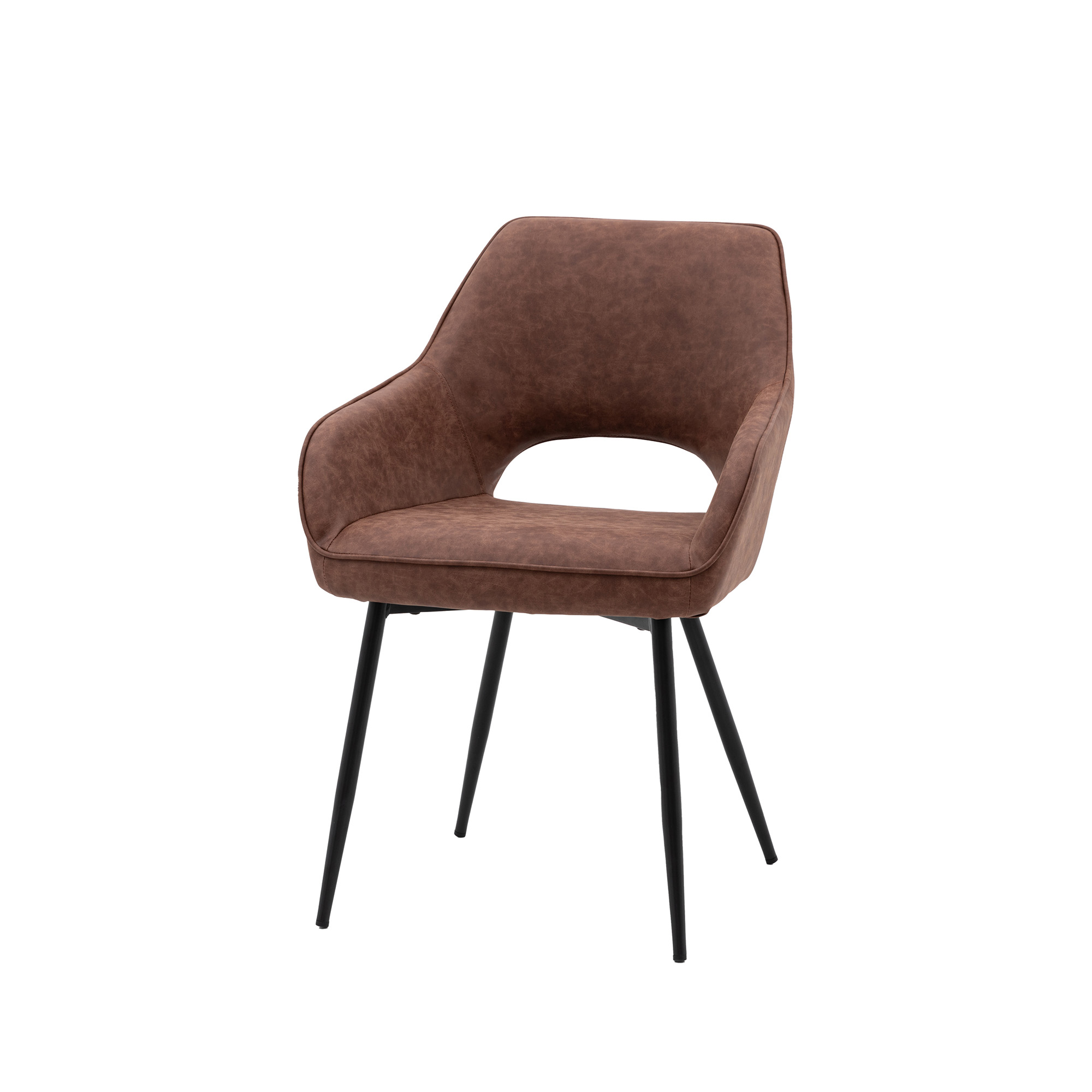 Bring modern comfort to your dining area with the Ivorra Dining Chair. Its gently curved design, soft brown upholstery, padded seat and backrest create a stylish and cosy seating option. Black metal legs add a hint of industrial flair, making it versatile enough for any dining space.