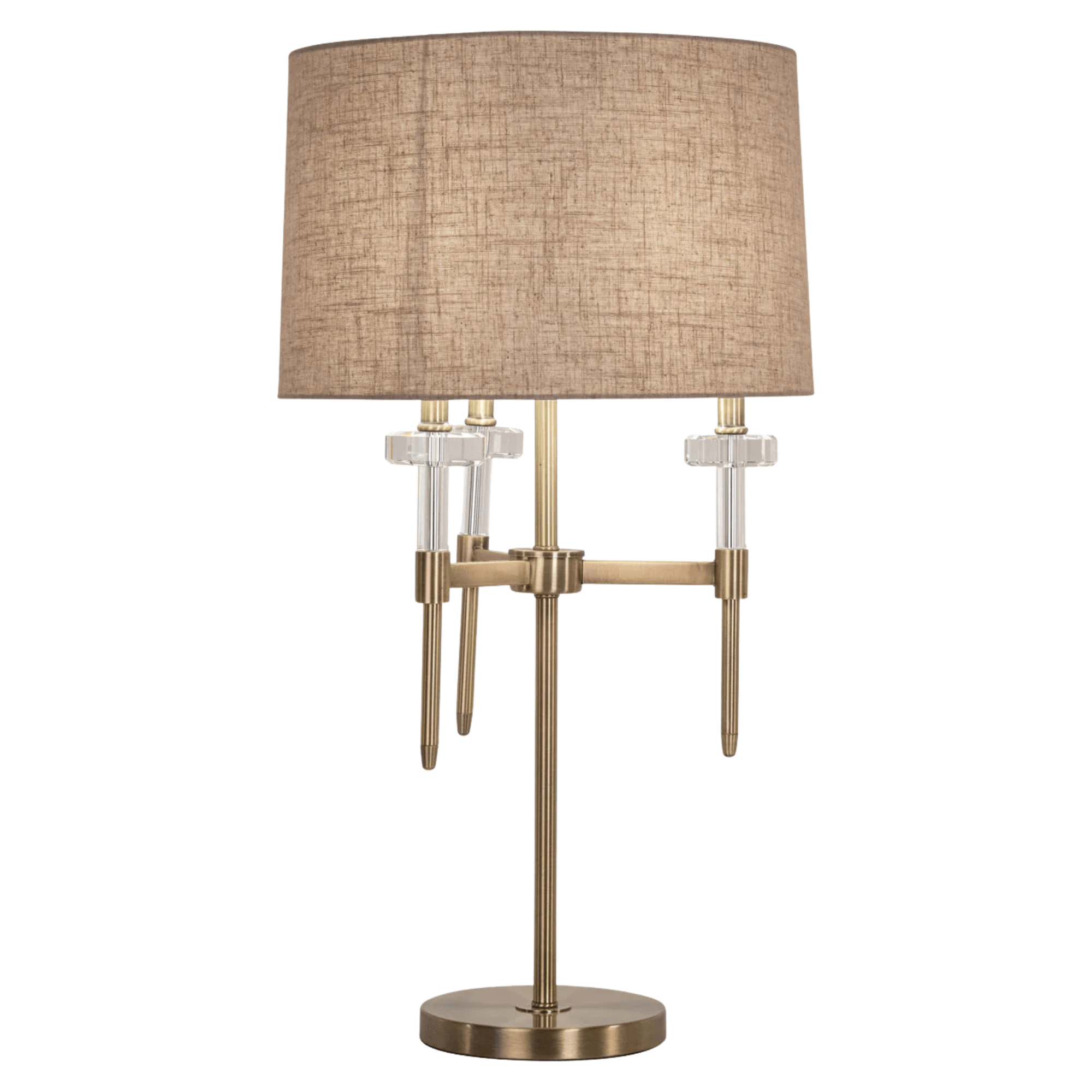 Josie brass table lamp with crystal accents and warm fabric shade, blending Art Deco glamour and soft ambient light for bedrooms, living rooms or studies.