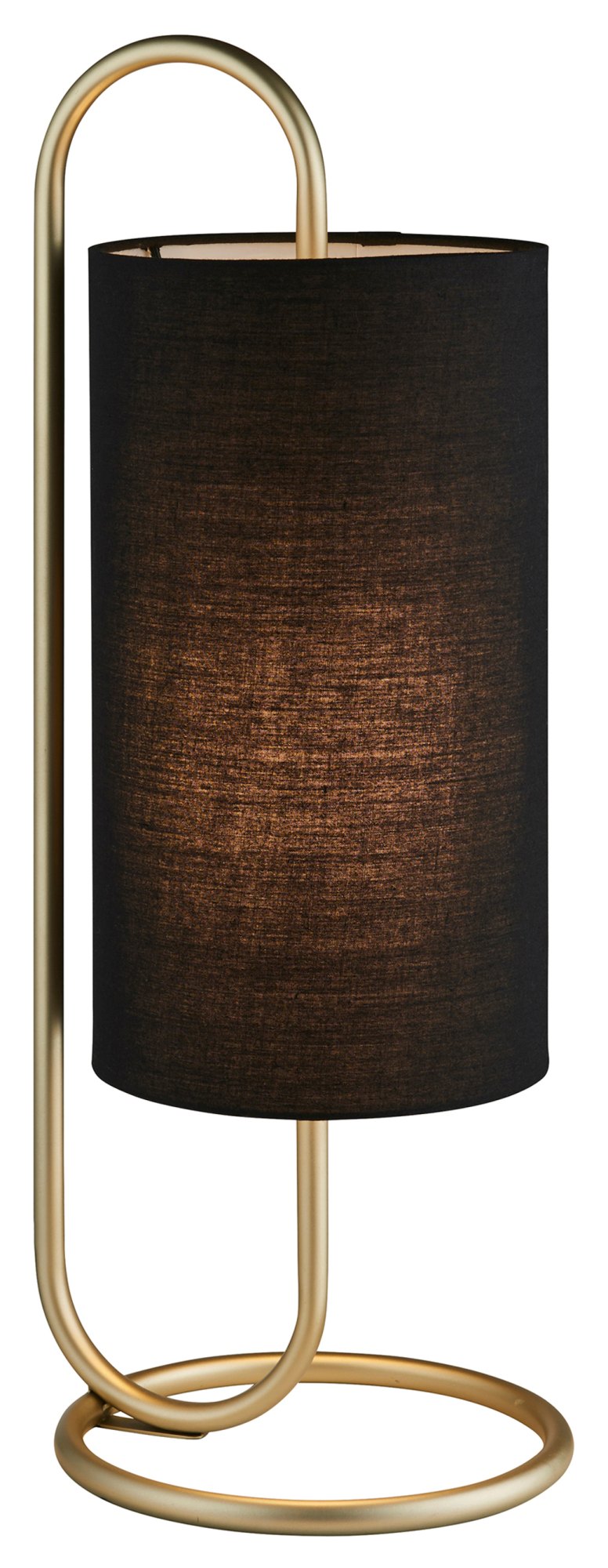 Materials & Finish: Antique brass painted metalwork; black fabric cylinder shade