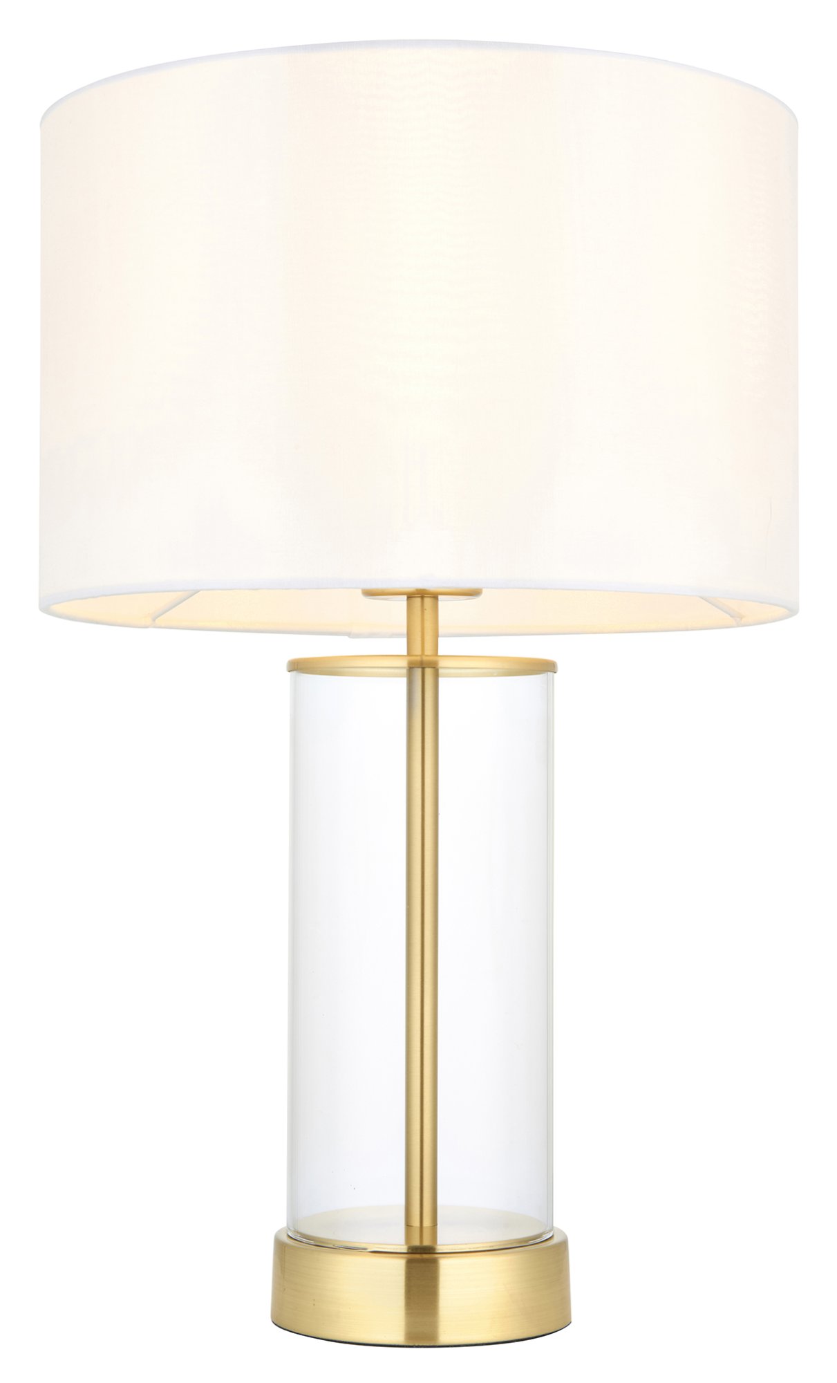 Introduce a touch of timeless elegance to your interiors with the Lessina Table Lamp. Crafted with a distinctive clear glass cylindrical base, this lamp exudes sophistication and charm. The vintage white faux silk shade complements the brushed gold metalwork, creating a harmonious blend of classic and contemporary design. Equipped with a three-stage touch dimmer switch, the Lessina Table Lamp allows you to effortlessly adjust the lighting to suit your mood and setting. Whether placed on a bedside table, console, or sideboard, its warm glow and refined aesthetics make it a standout piece in any room.