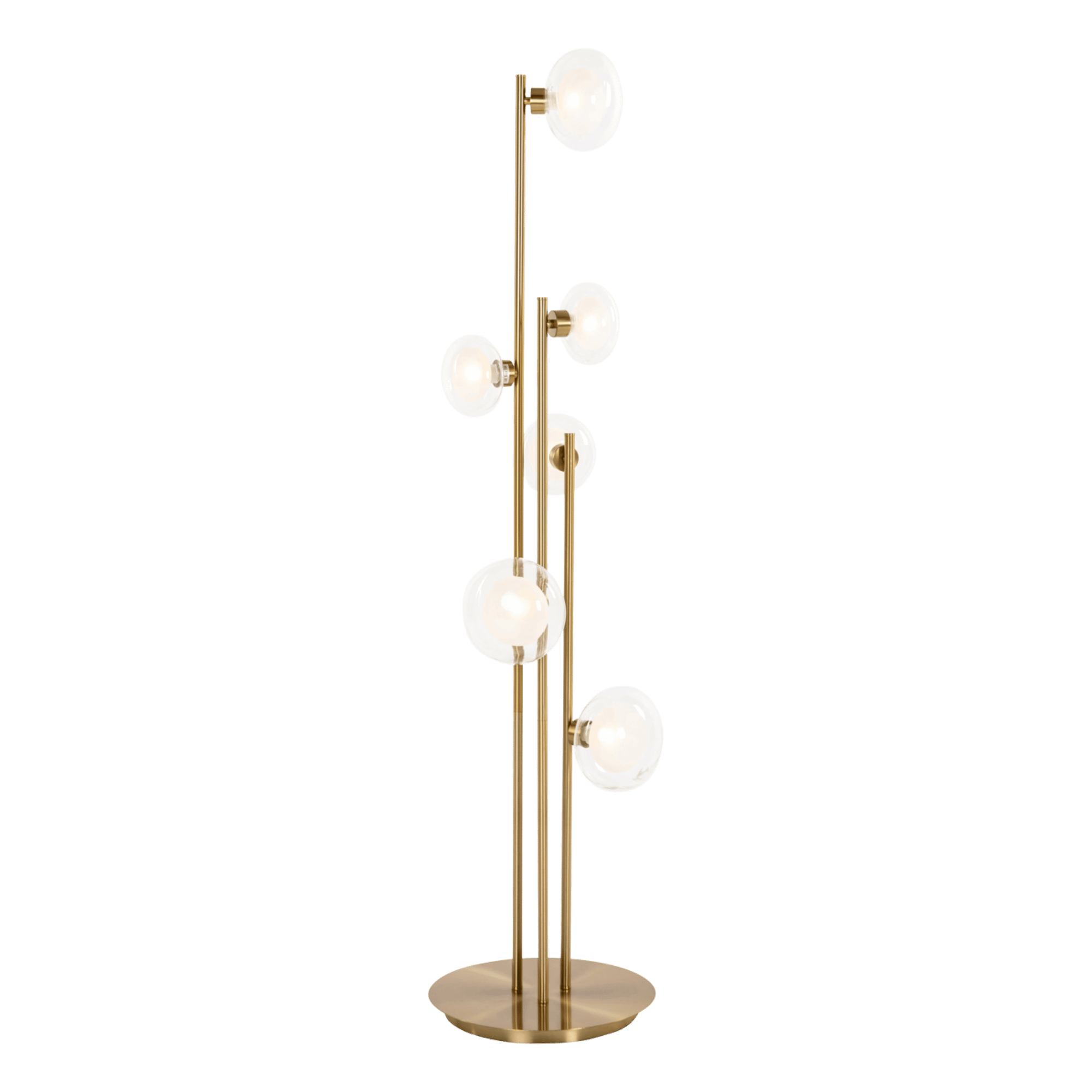 Striking floor lamp design with multiple light points along slender stems for depth and visual appeal.