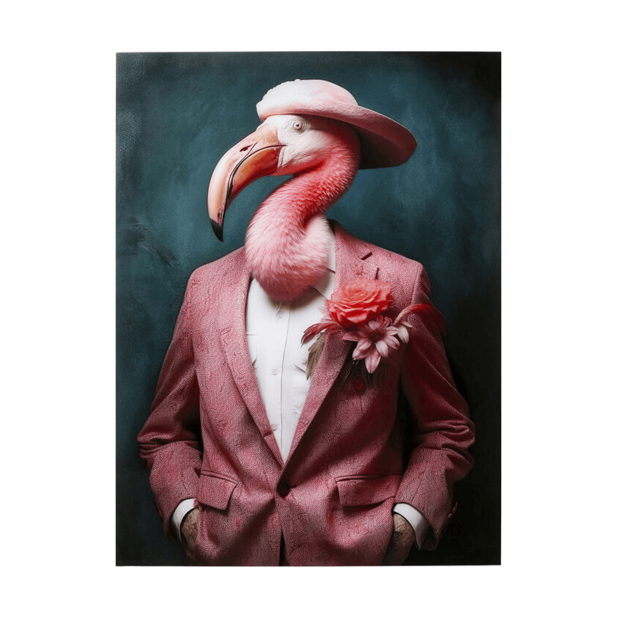 Flamingo Gentleman Glass Wall Art | XL Statement Picture