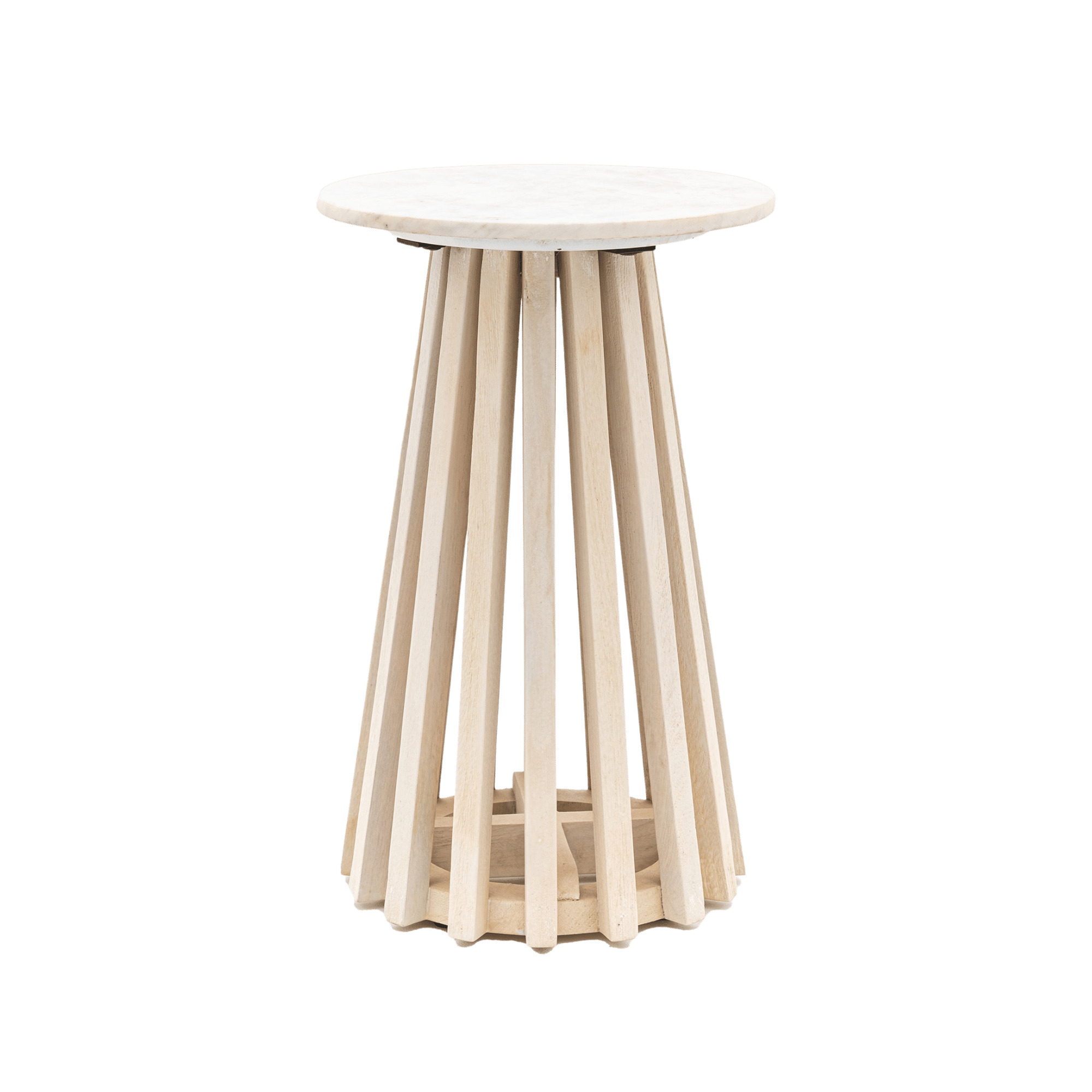 White Marble Side Table with Mango Wood Base